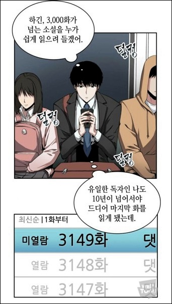 전지적 작가 시점은 간단하게 내용을 보자면, 현실에선 아직 인턴인 김 독자는 연재 중인 웹소설을 보면서 시작됩니다.